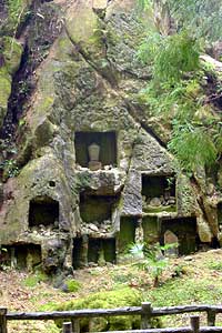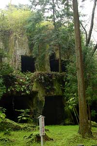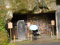 2003年4月23日:うっそうとした杉木立に歴史を感じ、石窟に修行の厳しさを思い知らされ、山門脇紅白の臥竜の梅に心いやされました。梅と桜の満開が一緒に見られました。感激です。