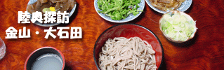 2003年4月25日:酒田を後に一路最上川を遡る。新庄経由で北上、やがて金山の独特な住宅様式の街並みがあらわれる。街路を抜けた町外れを標識にそって山中へ。やがて「谷口がっこそば」を発見。廃校になった小学校を利用したそばやで、なんとも味わいぶかげな外観に意気込んで駐車。ところが、営業日は土日のみ。当日は金曜日、今夜は眠れそうも無い。