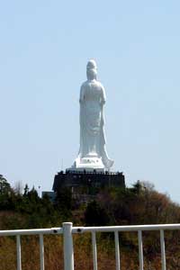 唐桑半島の巨釜半造の高さ16mの折岩は三陸津波の時に上から2m折れたそうである。釜石の観音さんは高速からだとずーと後ろ姿です。