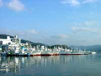 2003年4月27日:気仙沼港の朝。云わずと知れたフカヒレの本場です。当然、昨夜はフカヒレスープに生うに、生アワビをいただきました。寿命が延びた感じがします。