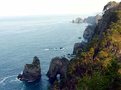 宮城県南端の気仙沼から岩手県東岸の海岸線は、南北180kmにわたる国立公園陸中海岸に指定されている。典型的なリアス式で変化に富み、荒削りな北山崎、清冽な浄土が浜などの景観を作り出しています。