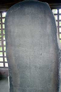 「壺の碑」 江戸初期に発見され、大昔からの歌枕として有名で、千年の記念との対面に芭蕉も涙した。