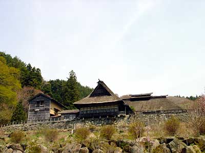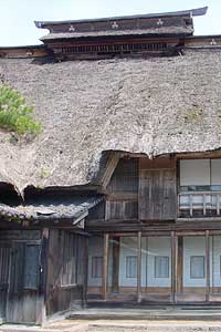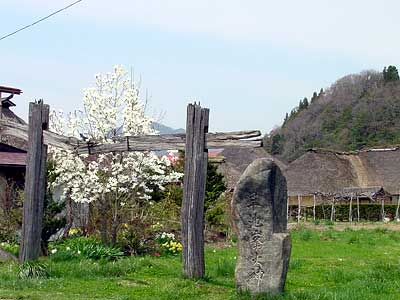 2003年4月29日遠野・千葉家曲屋:200年前の南部曲屋。昔は家族25人、作男15人、馬20頭が同じ屋根の下で生活した。現在も生活に使用されている。なんとも凄まじいが、当時は普通のことで、作男などは子飼いの農奴で、当主以外の兄弟もすべて働き手として離せなかったのであろう。貧しい東北はつい50年前まで続いた。