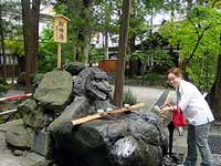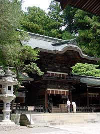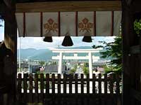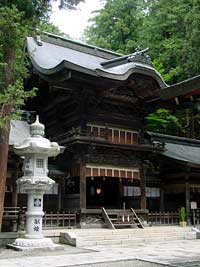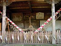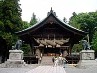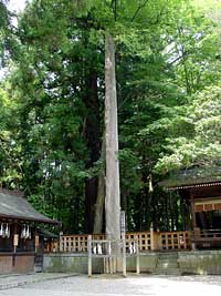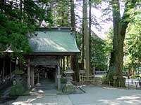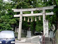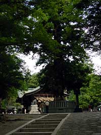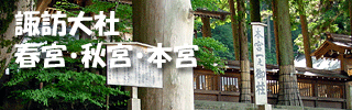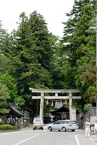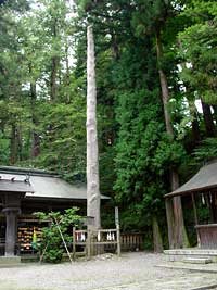 中山道と甲州街道の分岐点にあり、参拝者も多い。ここのお清めは温泉でビックリしました。鳥居をくぐると根入りの杉と言われる巨木(樹齢800年)があり、神楽殿の巨大な注連縄、拝殿脇に御柱が鎮座する。