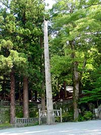 2003年8月11日:諏訪大社は古事記、日本書紀記載のある国譲りに登場する出雲の大国主神の次男で、中央に逆らって諏訪に逃亡し、この地に定住した建御名方神(タケミナカタ)を祀る。天下の奇祭・御柱祭は太古より続き、とぎれることなく7年ごとに開催される勇壮な一大イベントである。