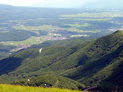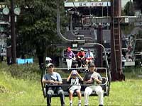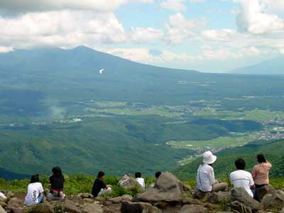 車山では二本のリフトを乗り継ぎ山頂へ。ハングライダーの飛び交う山頂からの絶景。
