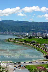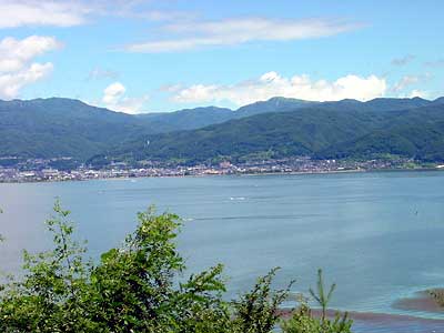 諏訪湖:四方を山に囲まれた湖は、冬には全面結氷のあげく、氷が割れる御神渡りなる現象もみられる。湖岸には縄文遺跡も多く、この標高で古くからの人の生活があった。