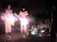 | 夜は定番の花火大会。静かなる高原の夜には線香花火が良く似合う。 |