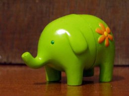 上のロボットと一緒にもらったカード立て。 なんか前足が後ろ足より短くて前かがみ(笑)。 上半身と下半身(象でもこういうのかな?)が 磁石でくっついてます。かわいいけど前かがみ。 |