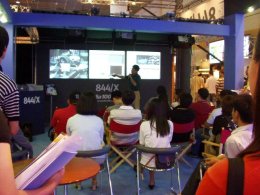 国際 放送・映像・音響・照明機器 展示会)” (COEX展示場にて) COEXで開かれた放送・映像・音響・照明機器の展示会。同僚のセファが去年(←大学生だった) 照明の授業で連れて行ってもらって楽しかったらしく、一緒に行こうと誘われた。 ![]() 毎年行われているこの展示会は関係者には招待券が配られる。私達は 知り合いの「C2音響」さんに招待券が来ていたので、その招待券をもらって行ってきた。 それにしてもCOEXにこんな展示場があるとは知らなかった。迷っちゃった。 |
