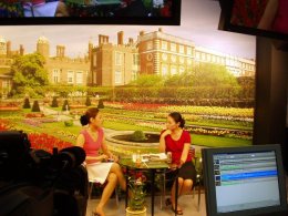 ![]() こちらは画面で見える映像。 庭園の中で話しているように見えるの。 なんとも不思議。実際に見るともっとリアル。 |