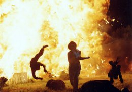 | 特殊効果チームはその名も「デモリション」。 爆発シーンや銃を使ったシーンの担当です。 韓国映画の特殊効果の多くを手がけている やり手のチーム。爆発シーンは緊張感溢れる 撮影でした。アクション映画ならではの 貴重な体験でした。人ぶっ飛んでるし(笑)。 |