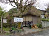 | 名物・板そばを食べました。少し太めで歯ごたえ十分です。このソバを食べに、東北へ来たようなものです。感激!茅葺屋根がまたウレシイ♪ |
