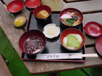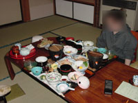 | 地元のソバ打ち名人のオバ様方によるお店。1000円でおソバ食べ放題でした。ここも有名店で、山奥にもかかわらず、(当日は雪で道路が封鎖。迂回路経由でたどり着けました。)満員の上、外で待っている人もいました。三種類の付け合せも美味しくて感動しました。 |