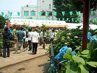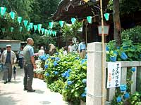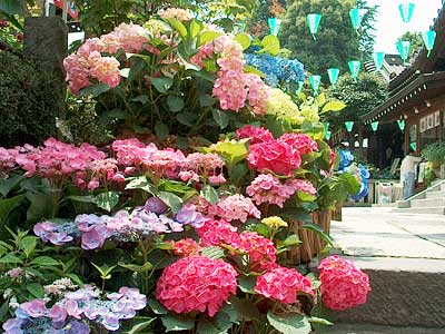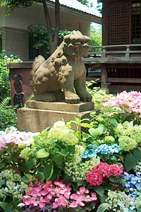 2003年6月8日:白山神社であじさい祭りも始まり、今が盛りのあじさいを撮りました。露天もでて大賑わいで、紫陽花に囲まれた狛犬さんも誇らしげでした。