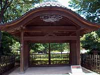この建物は、板橋宿(町)にあった三階建ての遊廓建築で、明治18年に建築されたものです。北豊島郡の中心地であった板橋を代表する高楼建築として有名でしたが、昭和47年の解体にともない、唐破風様式の玄関のみを移築しました