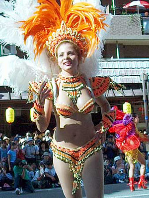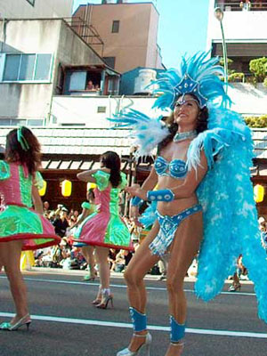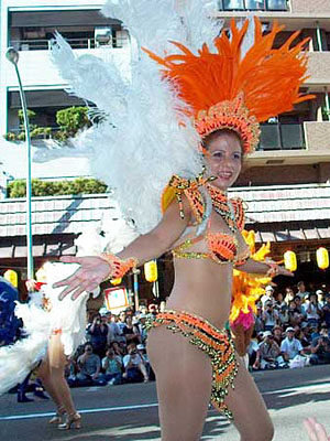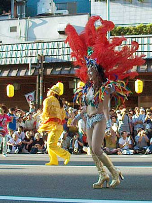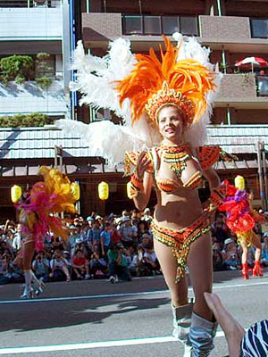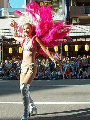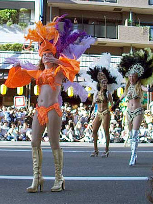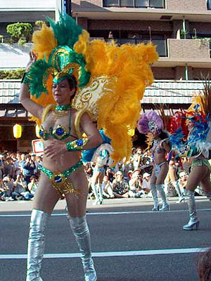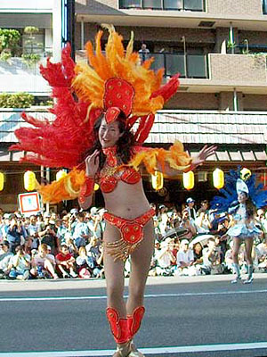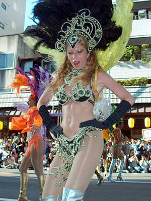 本場のサンバダンサーに混じり、我が大和撫子も妖艶ないでたちで奮闘しています。