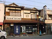| 山形県最上川三難所そば街道には14軒のそばやが点在している。名物店の茅葺屋根に吸い込まれるように店内へ入る。座るとおかずの注文をとりにきて、そばは黙っていても出てくる。うす盛りとむかし盛り(大盛り)しかない。典型的な箱そばで、田舎ソバの麺は太く野趣あふれる。そばつゆは辛口で、噛み応え十分で付け合せの身欠き鰊に感激。漬物もうまくなんともいい感じになれます。 |