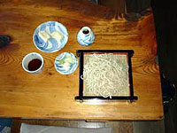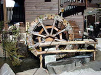 2002年2月:昇仙峡の蕎麦屋。粉を水車でひく絶品の蕎麦をいただきました。