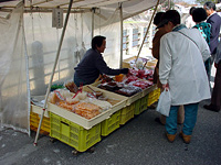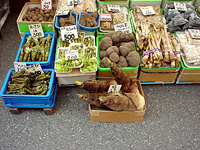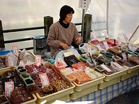 朝市では季節の新鮮な野菜や名物の漬物などと沿道の商店の出店もあり、十分に楽しめます。