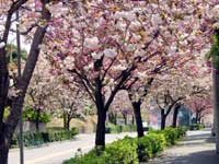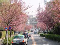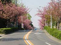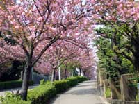 日・8分咲き・檀渓橋側には白、ピンクが交互に咲き競っている