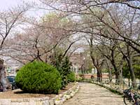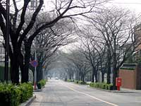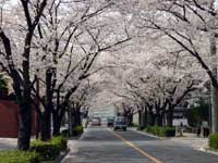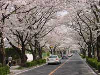 夜、移動しながら鑑賞してください。車のライトがさくらのトンネルを際立たせます