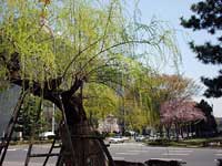 官庁街で春の芽吹きを見つけました(ケヤキ、鯉のぼり、やなぎ)