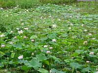 日:鶴舞公園のハスが見頃です。午前中に開花してます。