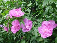 7月20日:ムクゲとカボチャの花。夏の日差しです。