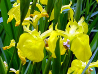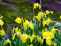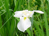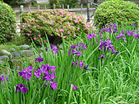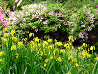 2002年5月1日:新緑で包まれた鶴舞公園のキショウブと満開のツツジ・コデマリ。ところで、「鶴舞」は「ツルマ」なのか「ツルマイ」と読むのかと聞かれた何代か前の名古屋市長・杉戸清氏は「ツルミャだがや」。故・杉戸氏のご冥福を祈ります。(中日新聞)
