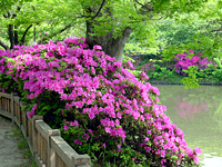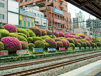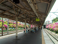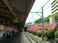 2002年5月1日:ツツジで有名な東京・駒込駅。まだまだ三分咲きです。By リクさん