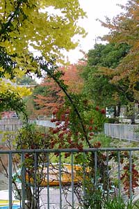 2002年11月12日:瑞穂区山崎川の見事な桜の紅葉。見頃は今週一杯、風がふけば終ってしまいます。
