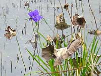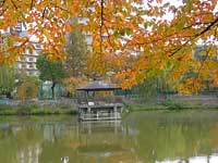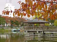2002年11月12日:昭和区隼人池に桜の紅葉を見にゆきました。白サザンカと季節外れの花菖蒲