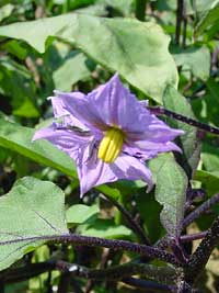 2003年7月2日:夏の花達 ダリア・ひまわり・ムクゲ・なす・右下の名前がわかりません。 名東区にて