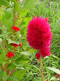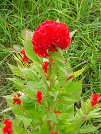 2003年7月27日:何だかしまりのない梅雨明けです。あひるちゃんと鶏頭と野草。昭和区にて
