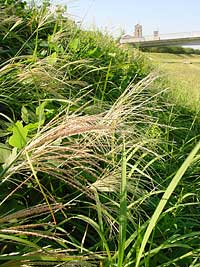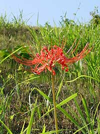 2003年10月1日:天白川も秋でした。律儀な彼岸花、ススキやらが秋風に揺れています。
