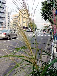 2003年10月11日:昭和区杁中交差点、電柱脇の紫式部とすすき。