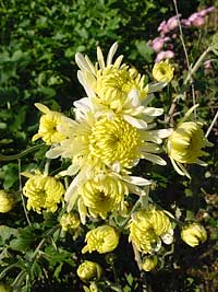 2003年12月4日:なんだか気の早い菜の花に食らい付くミツバチと菊の花二題。