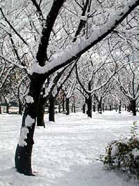 2003年12月20日:平和公園「桜の園」の初雪。積雪10cmなれど子供達は朝からおお張り切りでした。