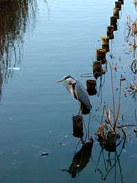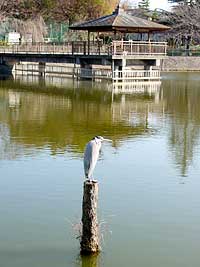 2004年1月31日:寒風をものともせず、餌を追い、日向ぼっこをする隼人池の住人達。