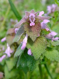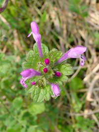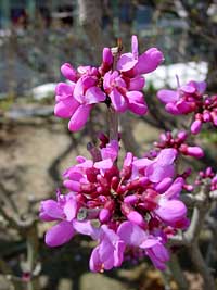 2004年4月5日:今が見頃のハナズオウ・ヒメオドリコソウ・リキュウバイ。 名東区にて