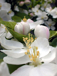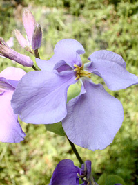 2004年4月9日:路傍のすみれ、花ダイコン、ひめりんご 川名にて