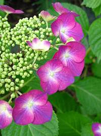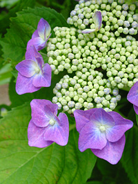 2004年6月1日:半僧坊真福寺のアジサイが咲き始めました。ナンテン・クチナシも見頃です。 昭和区にて