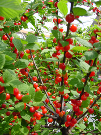 2004年6月3日:ラベンダーを漁るミツバチ、ダリア、ユスラウメ 名東区