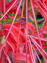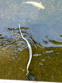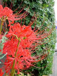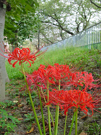 2004年9月15日:期待通りに必ず咲く彼岸花。隣の山崎川では、1.5mはあろうかと思われる蛇の抜け殻に食らい付く亀と見守る錦鯉。秋はすぐそこです。