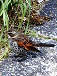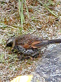 2005年3月8日:庭の草むらに頭をつっこんでしきりと何かしている鳥を見つけ