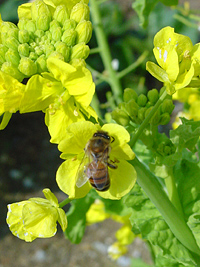 2005年3月16日:菜の花にミツバチが飛び交っていました。名東区