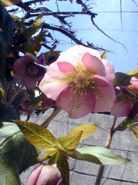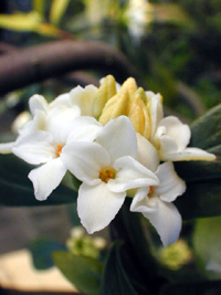 2005年3月21日:まさに旬、沈丁花(白)、クリスマスローズの白と赤。
