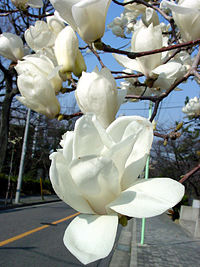 2005年3月28日:遅れていたモクレン、ミモザ、雪ヤナギなどの春告げ花が旬です。万博に浮かれましょう。瑞穂区