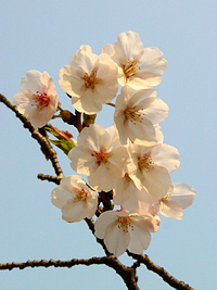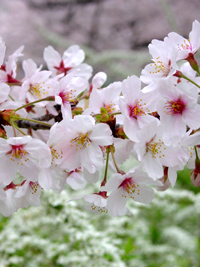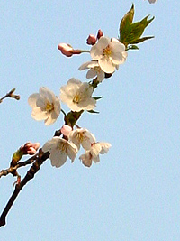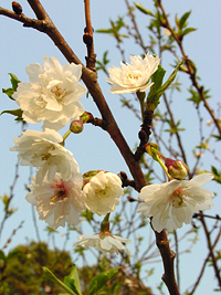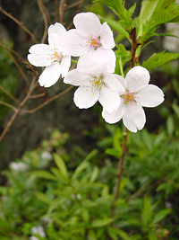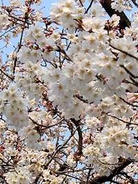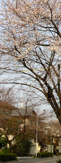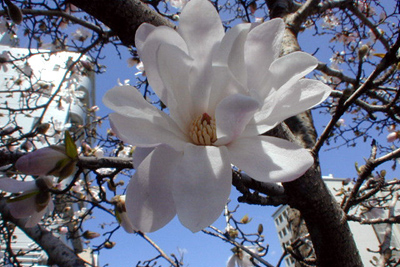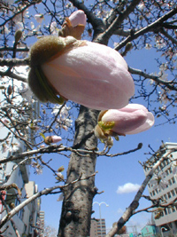 2005年4月5日:街路に咲くヒメコブシ。この寒さで花が重なります。